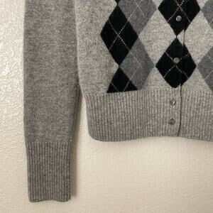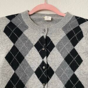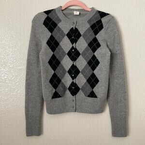 J. Crew Cardigan Womens Medium Gray 100% Cashmere Argyle Academia Preppy Y2K