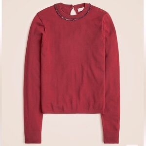 J. Crew Carolyn embellished crewneck burgundy sweater merino wool XS NWT CE699