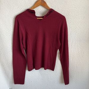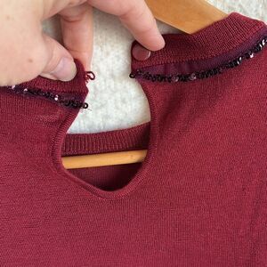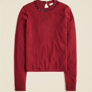 J Crew Carolyn embellished fitted crewneck sweater in merino wool Large Burgundy