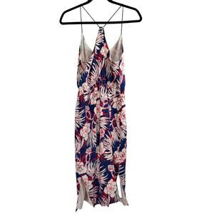 J. Crew Carrie Halter Slip Dress Blue White Floral Silk Hawaiian Sleeveless Sz 4