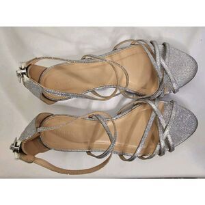 J. Crew Cary Mini Wedge Strappy Silver Glitter Sandals Size 8