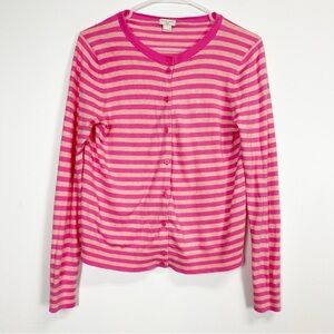 J Crew Caryn Cardigan Sweater Womens Size Small Pink Striped Round Neck Cotton