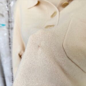 NOTE: Has several small moth holes on the collar, front, and sleeves that have been repaired - see pictures. Most of them are hard to see when wearing