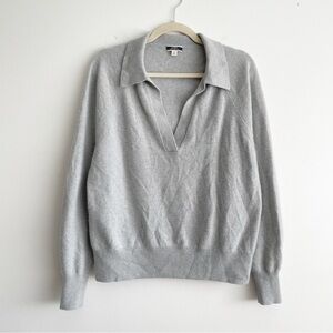 J. Crew Cashmere Collared V Neck Pullover Sweater medium Gray Minimalist luxury