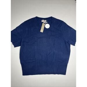 J Crew Cashmere Shrunken T Shirt Sweater Large Navy Short Sleeve Luxury Capsule