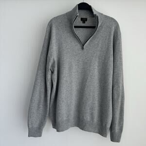 J Crew Cashmere Sweater Mens XL Gray 1/2 Zip Pullover Minimalist Luxury