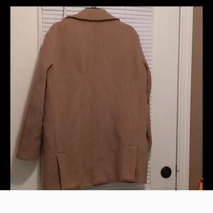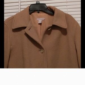cashmere and wool Chic camel pea coat by J. Crew. Features classic design with button closure. Ideal for layering in cooler weather.