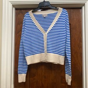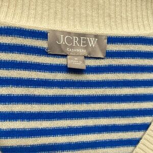 J. Crew Cashmere cropped V-neck cardigan sweater in Sail Blue stripe Sz M