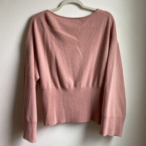J. Crew Cashmere ribbed crewneck sweater (Sz XL) Muted Pink Bell Sleeve V-Neck