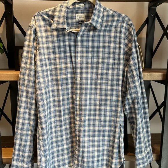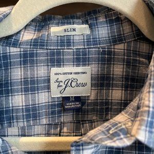 J Crew Men's Button Down Plaid blue and cream pattern Size M 100% Cotton