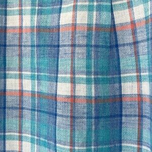 This casual button-down shirt features a classic plaid pattern in light blue, teal, orange, and white, perfect for a relaxed day out. Made from 100% cotton and slim fit, it offers comfort and breathability. The short sleeves and traditional collar add to its timeless appeal, making it a versatile addition to any wardrobe.