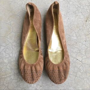 Embellished. Classic ballet flats shoes. Cece in light brown suede with stud detail. Some marks to the suede as shown in the photos.