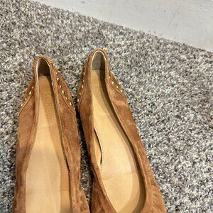 J. Crew Cece suede leather studded ballet flats round toe camel brown Size 8