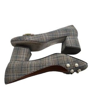 J Crew Celia Pumps Jeweled Glen Plaid Block Heel Plaid Rhinestone Pearl 9.5