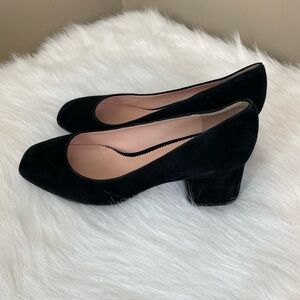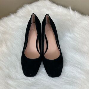 J Crew Celia Square Toe Block Heel Black Suede Pumps 7.5