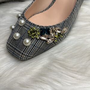 J. Crew Celia Glen Plaid Jeweled Pearl Block Heel Pump 7
