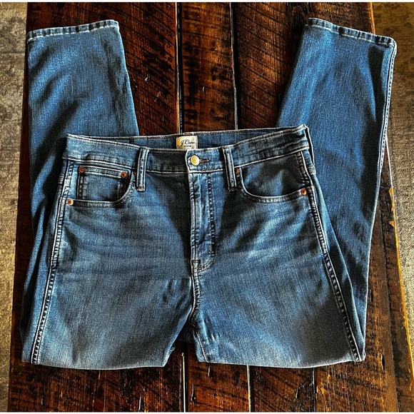 Preowned and in EXCELLENT CONDITION - J Crew Certified Factory "Vintage Straight" High Rise Women's+ Denim Blue Jeans in Medium Wash Size 30. Fair Trade Certified FACTORY Re-Imagined by J. Crew and inspired by the Planet and its People. Super soft jeans and look great on!