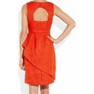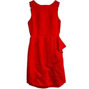 J. Crew Cha Cha Peplum Dress 100% Linen Sleeveless Ruffle Cutout Red Orange 0