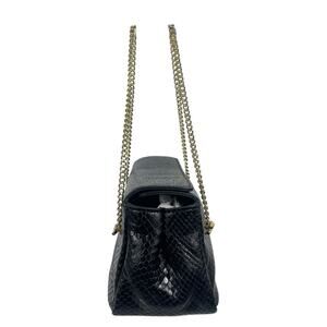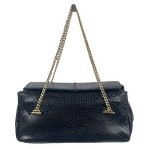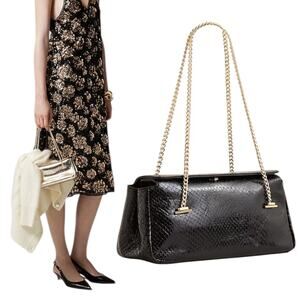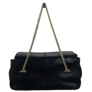 J. Crew Chain Stap Bag Snake Embossed Leather Black Gold Chain