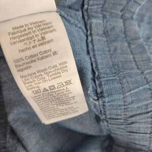 J.Crew Chambray Drawstring Short. Pull on. Elastic waistband with drawstring closure. Designed to sit just above hip. Front pockets. Lightweight non-stretch woven fabric. Material: 100% cotton.