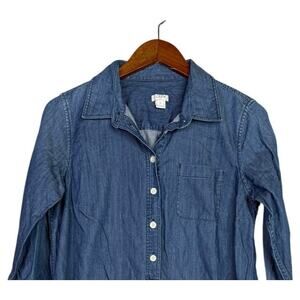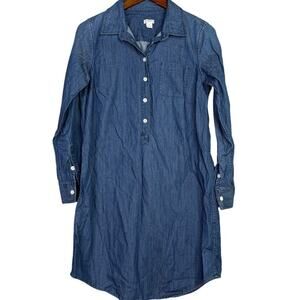 J. Crew Chambray Denim Mini Shirt Dress Collard Pocket Button Closure S Blue