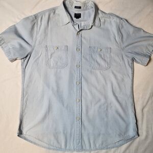 J. Crew Chambray Men's Short Sleeve Shirt Size Large Classic Fit Light Blue
