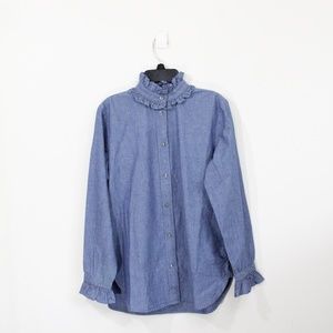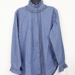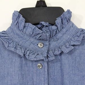 J Crew Chambray Shirt New Women Button Front sz 00 Long Sleeves