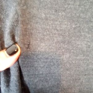 Elegant charcoal sweater by J. Crew. Crafted from soft wool...it has one tiny hole on the front by stomach area on one back by shoulder...other than that is good ...it can be fix I just didn't try. ..measurements are in listing