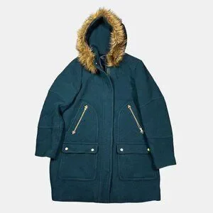J. Crew Chateau Coat Italian Stadium Cloth Wool Green Hooded Womens Size 16 TALL
