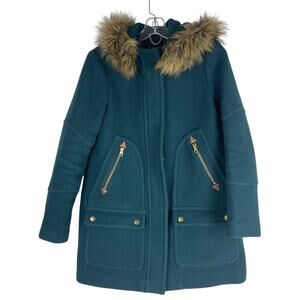 J. Crew Chateau Parka Coat Stadium Cloth Wool Midnight Green Size 4