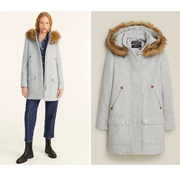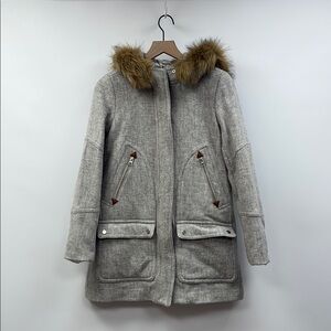 J. Crew Chateau Parka Italian Stadium Cloth Wool Long Coat Jacket Winter Grey 6