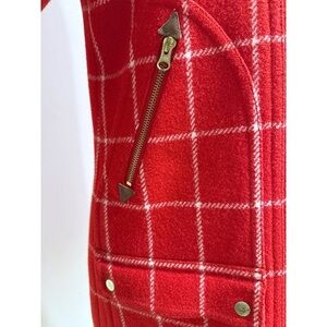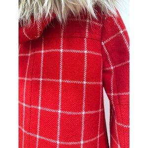 J. Crew Chateau Parka Red White Windowpane Plaid Removable Faux Fur Collar Coat