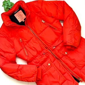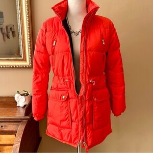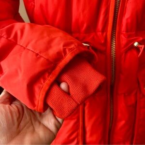 This J Crew red signature Chateau Puffer Anorak Coat Jacket is gorgeous!