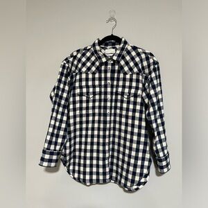 J. Crew Check Relaxed Pearl Button Cozy Shirt Shacket Western Preppy Size 2