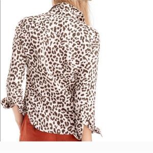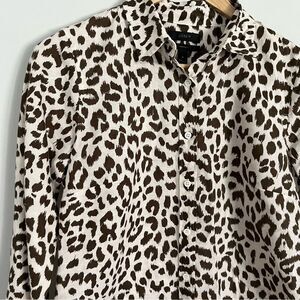 J. Crew Cheetah/Leopard Print Linen Blend Perfect Button Down Shirt