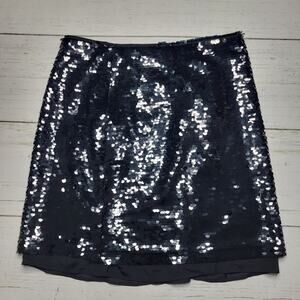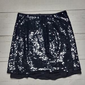 J. Crew Chiffon Lined Sequin Mini Skirt Black Shimmer Shine Party Medium 10