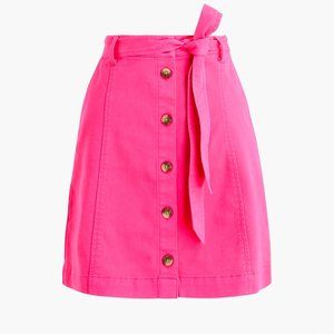 J. Crew Chino Button Front Mini Skirt With Tie Belt In Pink Size 10 NWT