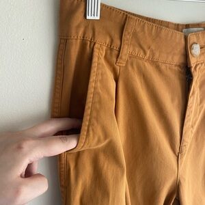 J. Crew Chino Cigarette Pants Pleated Mustard Gold Women Trousers Pencil Sz 2