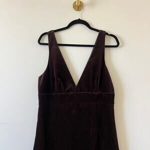 J Crew Chocolate Brown Velvet V Neck Fit Flare Empire Waist Midi Dress Women 12