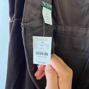 J Crew Chocolate Brown Velvet V Neck Fit Flare Empire Waist Midi Dress Women 12