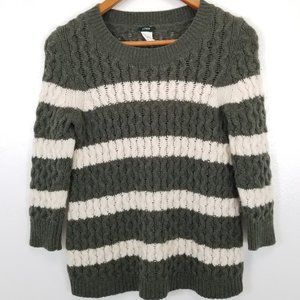 *Accepting Offers* Excellent condition. J. Crew 100% merino wool super thick chunky fisherman cable knit sweater, crewneck, Christmas olive green and ivory white cream. Size S. Style 55197