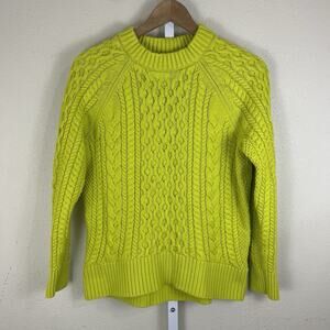 J. Crew Chunky Cable Knit Crewneck Fisherman Sweater Size S Small Green BV360