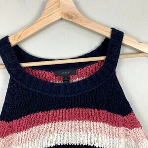 J Crew Chunky Knit Stripe Sleeveless Sweater Pink Blue XL Extra Large