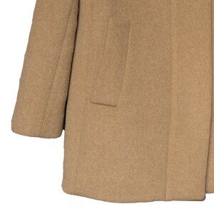 J. Crew City Coat High Neck Tan Beige Wool Minimal Quite Luxury Cocoon Jacket , size 6. The J. Crew city coat in camel brown is a long coat with a high neck and a tailored feel.