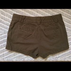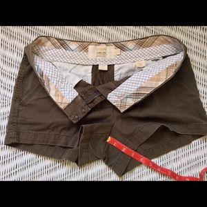 Brown J. Crew Classic Twill Chino Shorts "weathered and broken-in". City fit size 4. Barely worn. EUC. 100% cotton. Waist measures 16" laying flat. Rise is 9".