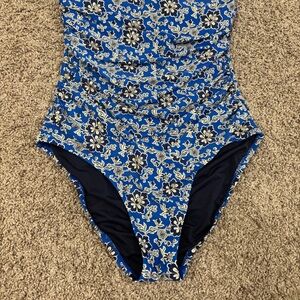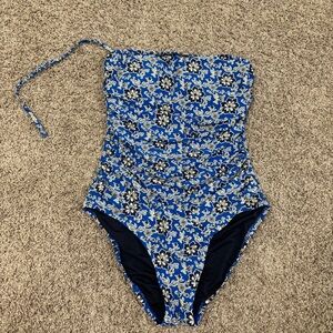 J. Crew Claremont Floral Blue Ruched Bandeau Swimsuit size 4
