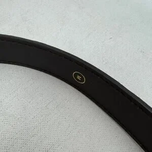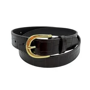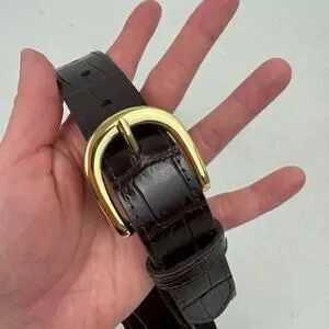 Dark brown, croc-embossed leather, gold-tone hardware, size M.