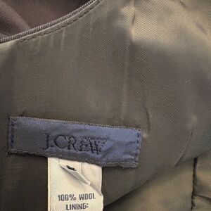 This is a beautiful dress by J Crew size 6. It is made from 100% wool and is fully lined. It has a bit of a 50's retro look with a scoop neck in the back and a fitted waist. The bust measures 34", waist is 30", length is 38". Very versatile dress that could go from the office to out to dinner! It is in excellent condition.