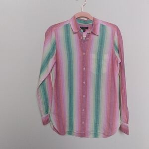 J. Crew bright lightweight long sleeve linen blend classic button down shirt in a fun spring rainbow colorway