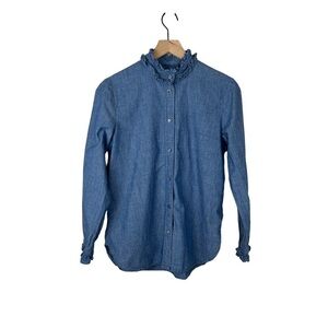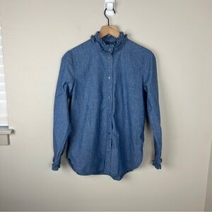J Crew Classic Fit Chambray Ruffle Neck Shirt